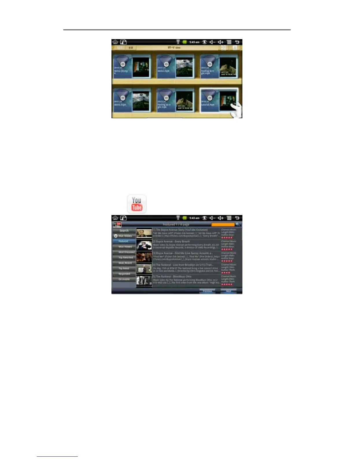 Note: Some You Tube video formats may not be supported or always open correctly.