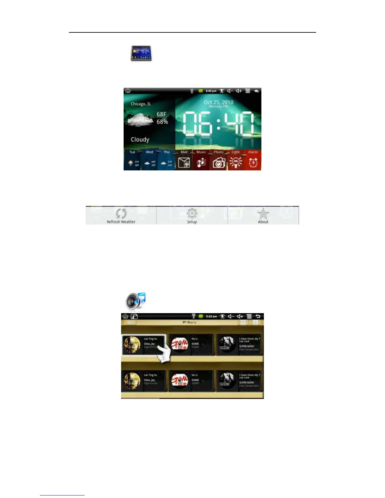 Long press the back to pop up the shortcut menu, including refresh weather, setup and