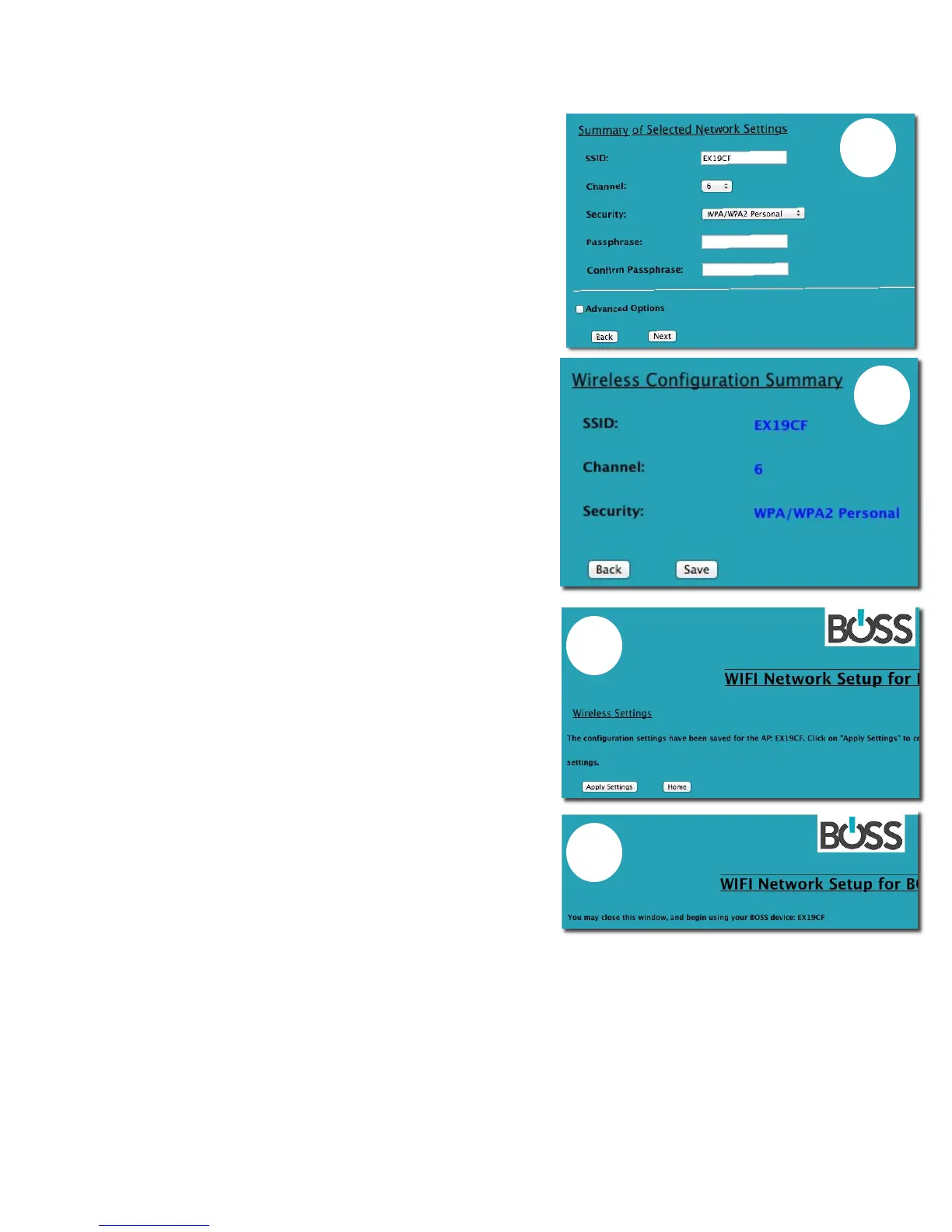 Boss 120 - Enter Network Credentials; Apply Network Settings; Installation Completion