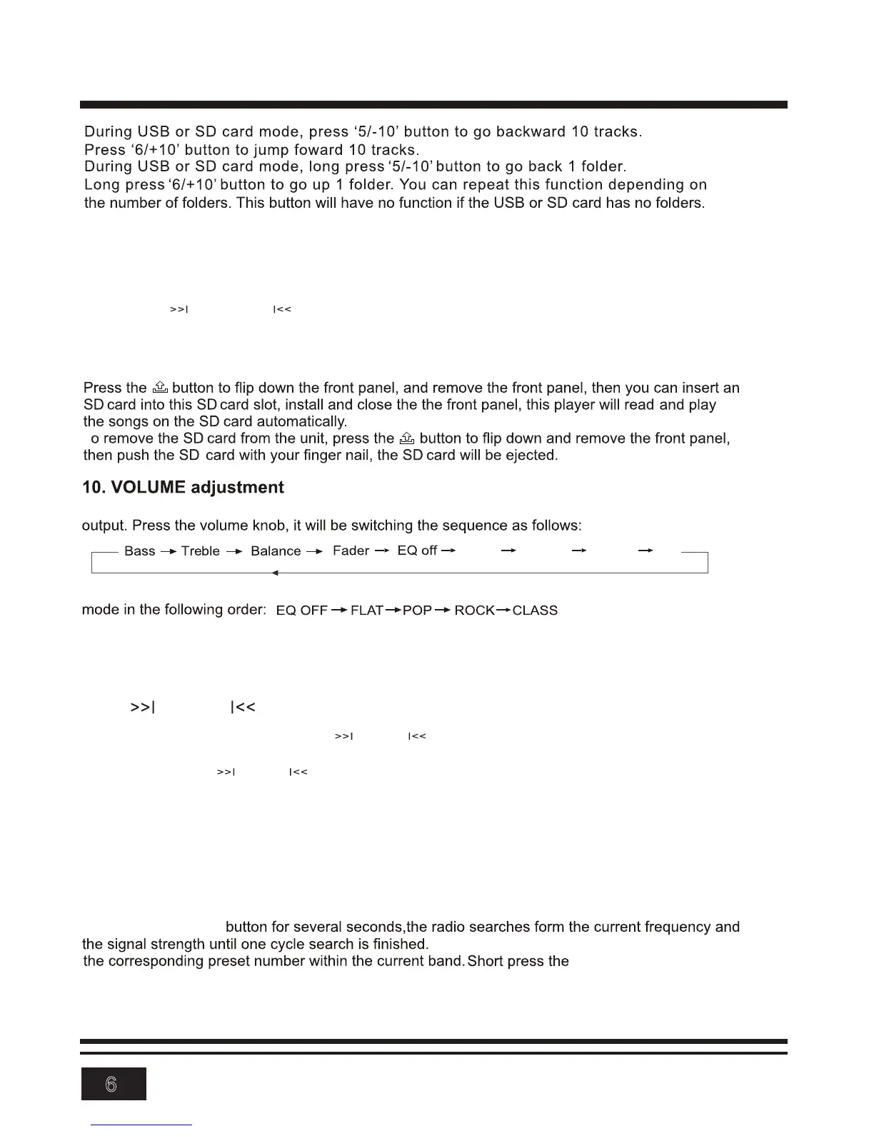 In the USB or SD card mode, press the volume knob to enter the EQ function that the audio