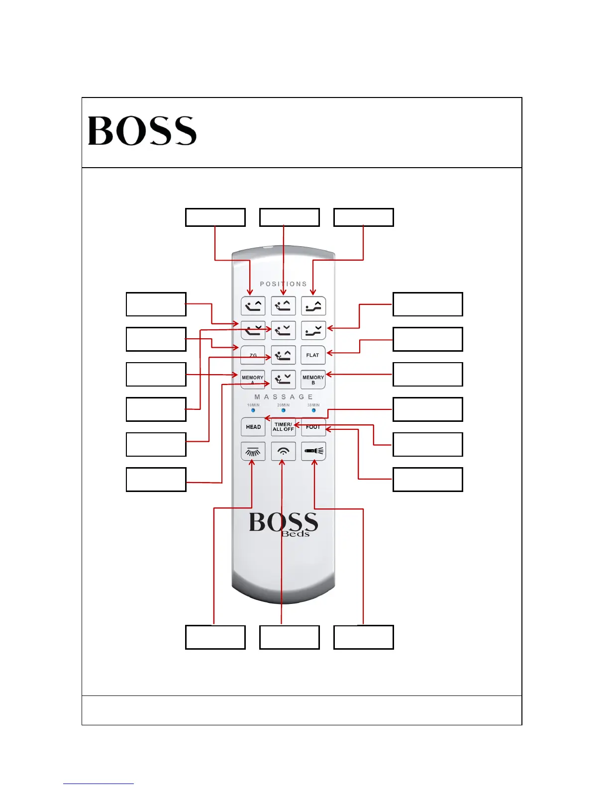 Boss 950 - Wireless Remote Control; Position Control Buttons; Massage and Timer Functions