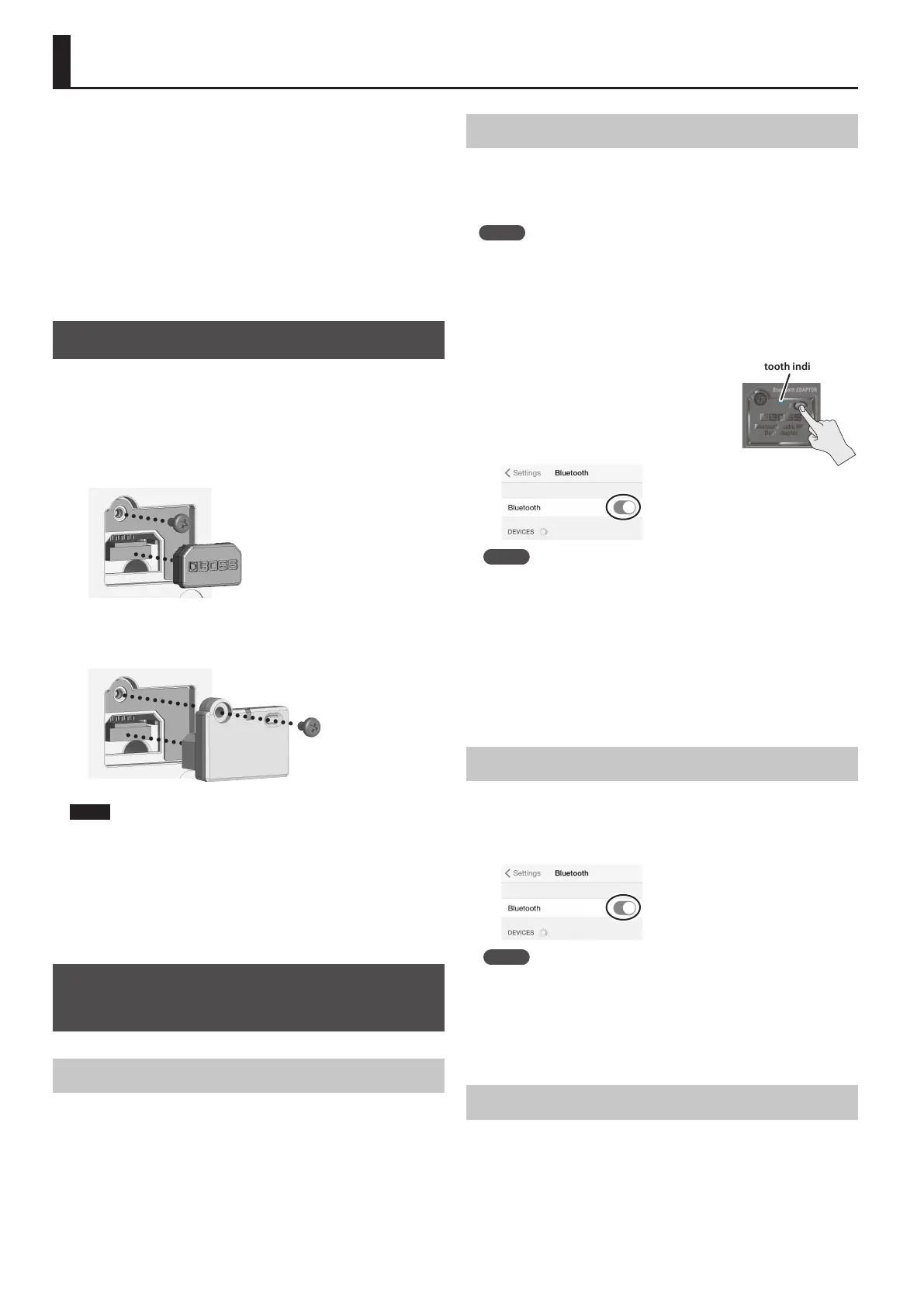 Bluetooth ADAPTOR connector. If you use a dierent screw, the unit