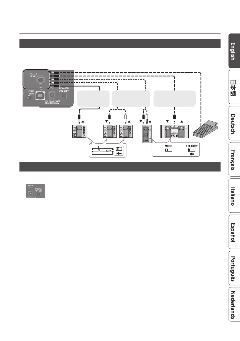 If you connect a footswitch (FS-5U, FS-6, FS-7: sold separately) or expression pedal (FV-500H, FV-500L, EV-30, Roland EV-5: sold separately)