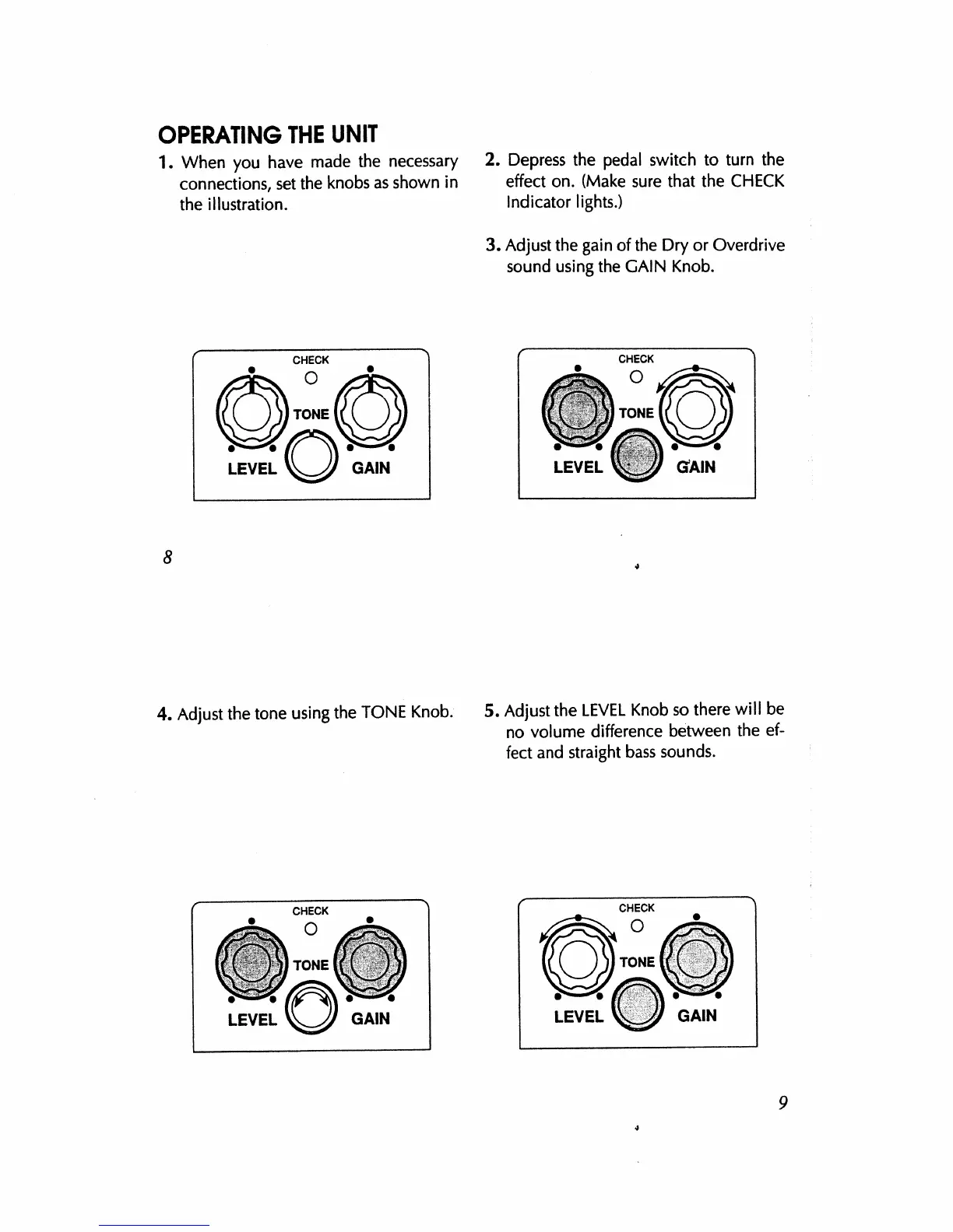 Boss BD-2 Blues Driver - OPERATING THE UNIT; Initial Setup and Activation; Sound Adjustment; Level Balancing