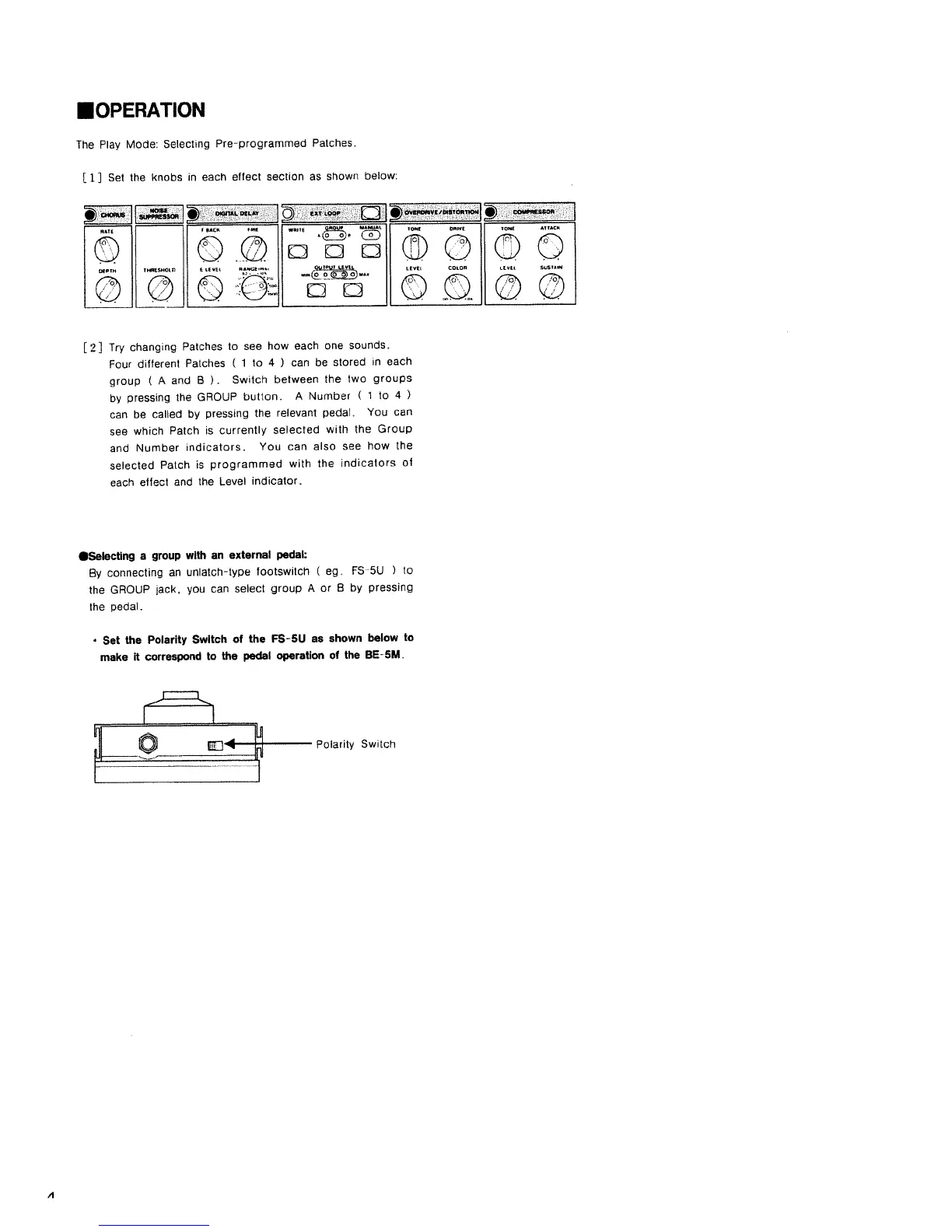 Boss BE-5M - OPERATION; Selecting Pre-programmed Patches; External Pedal Group Selection