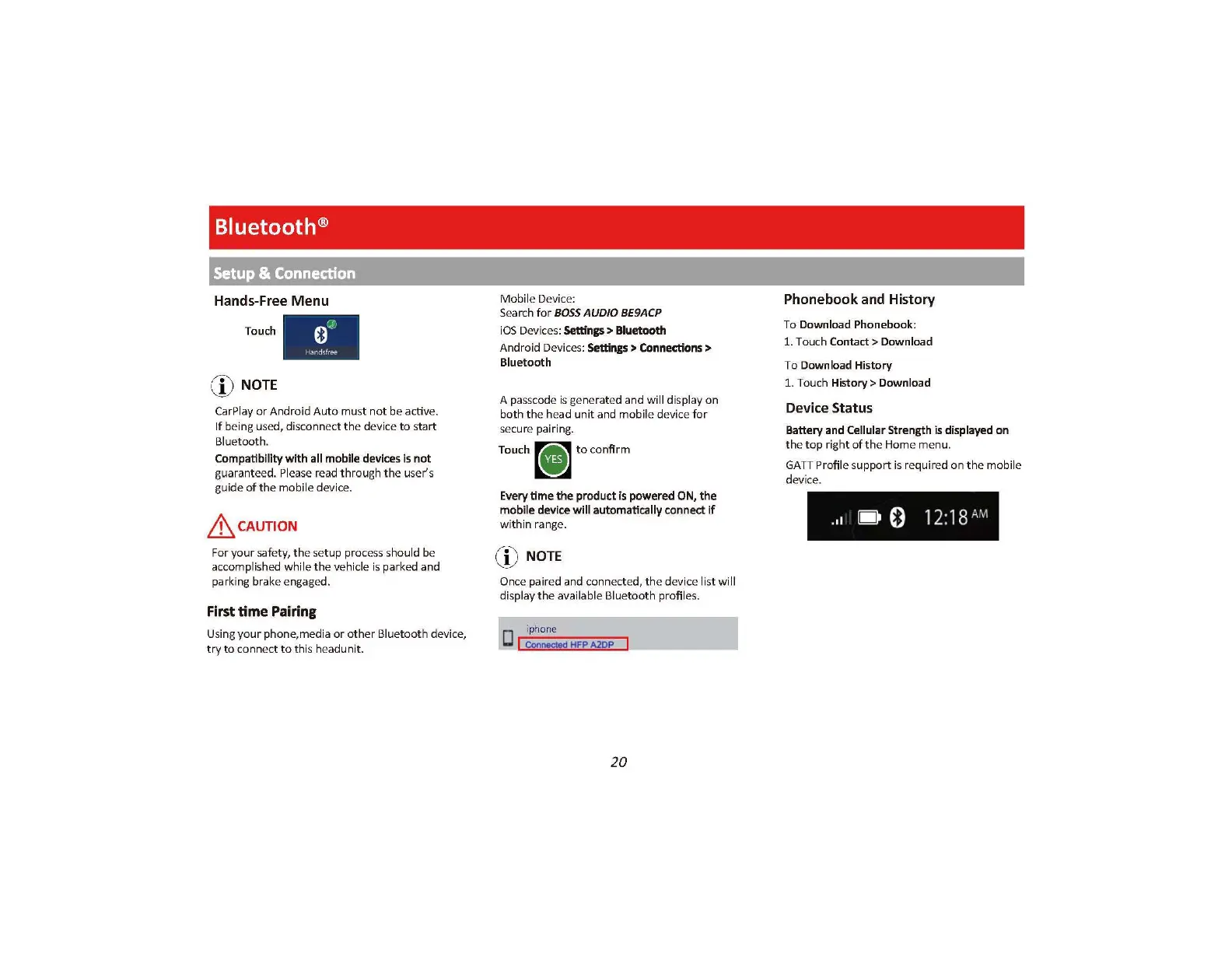 Boss BE9ACP - Connectivity Features; Bluetooth Setup and Hands-Free Operation
