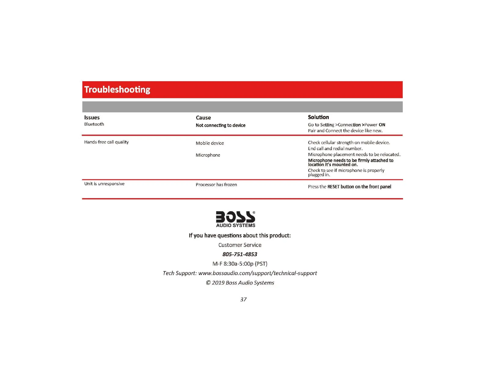 Boss BE9ACP - Unit Responsiveness and Bluetooth Issues