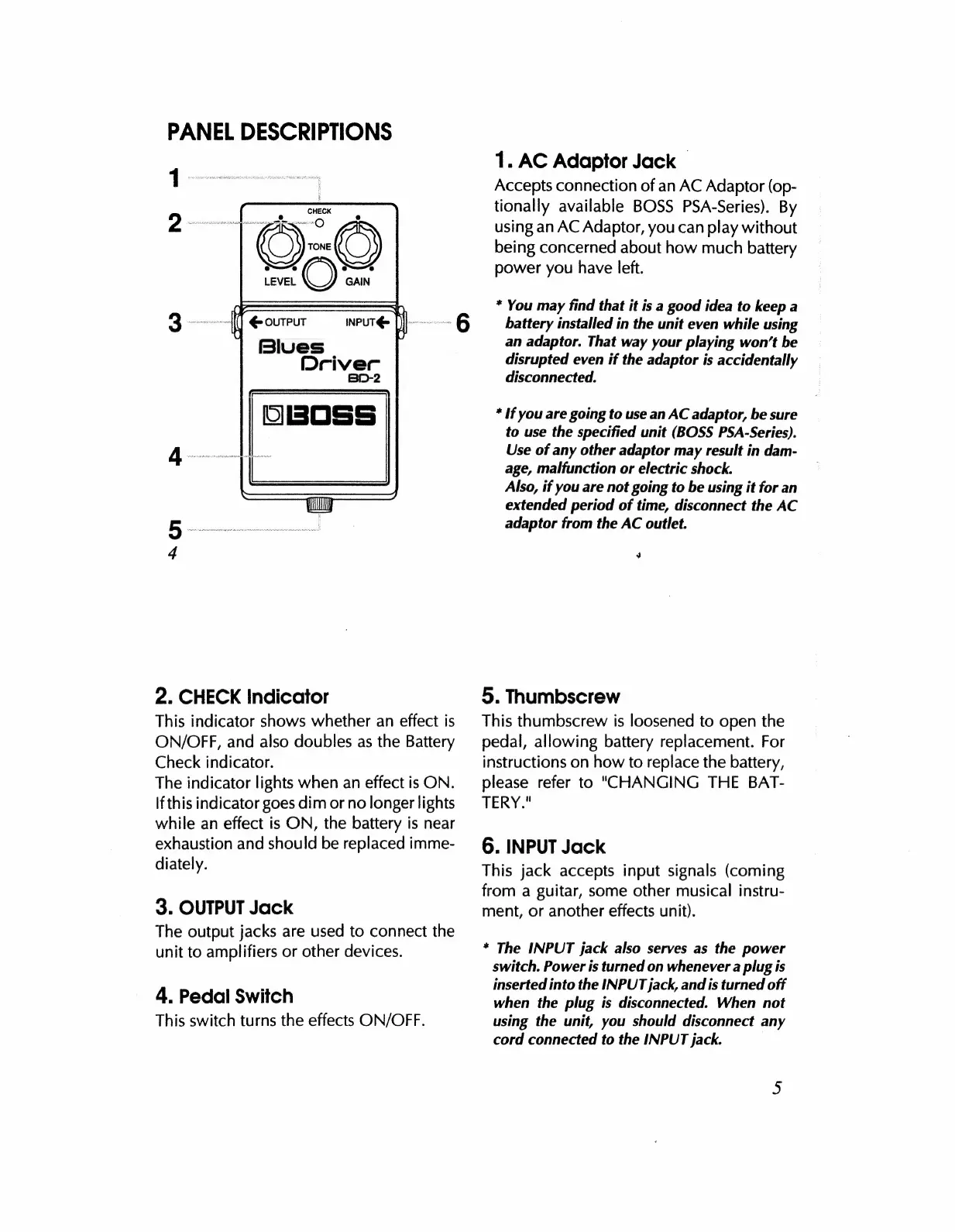 Boss Blues Driver BD-2 - Panel Descriptions
