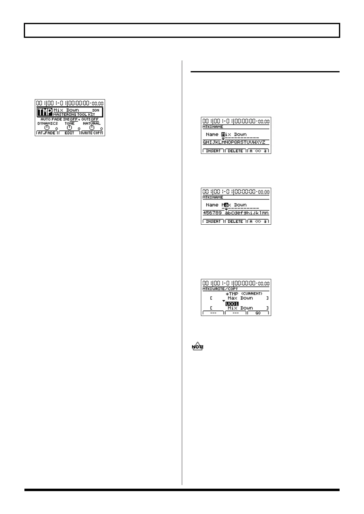 Press [F1] (NAME) on the Mastering Tool Kit edit