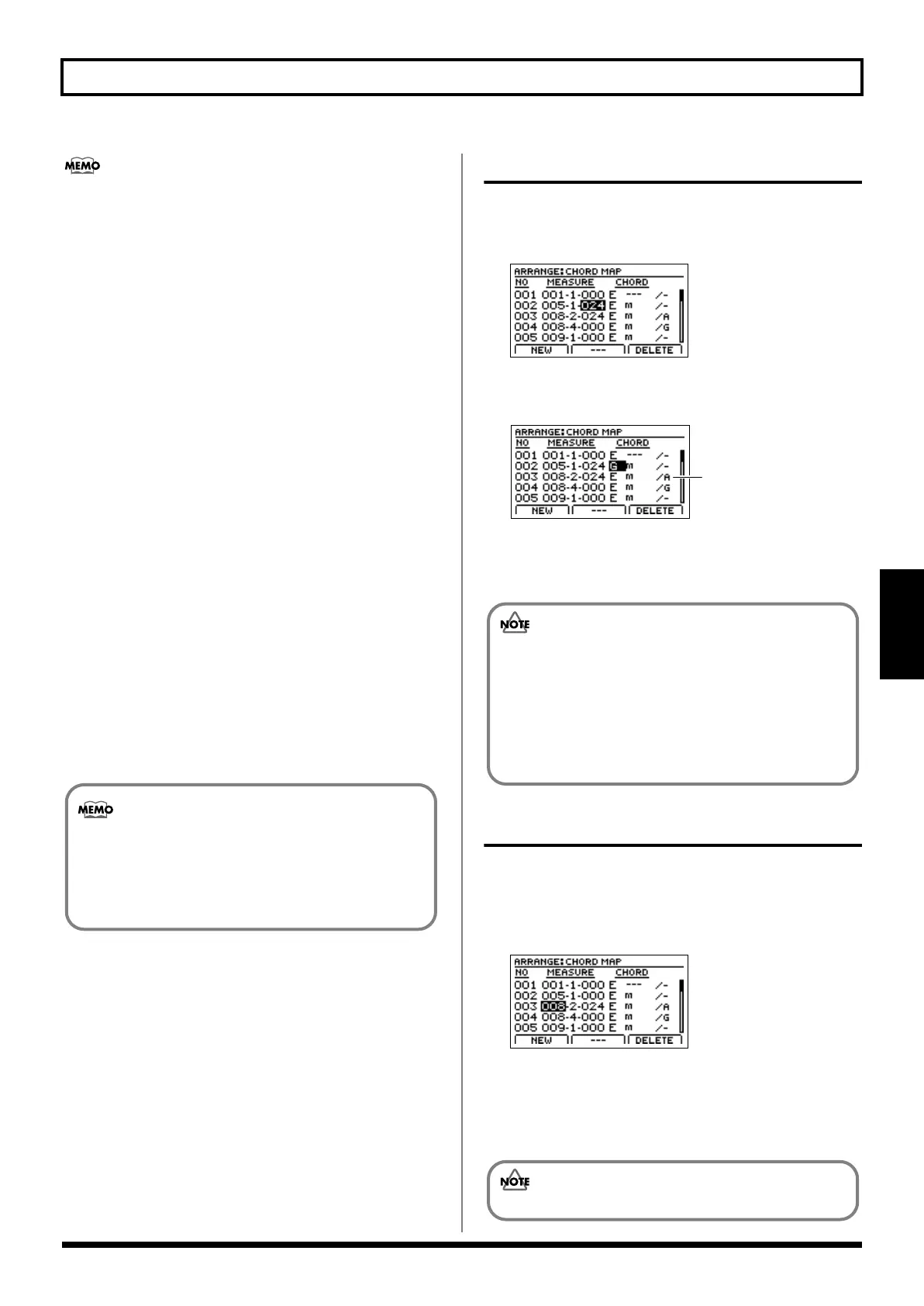 • The location of the first chord is always fixed at 001-