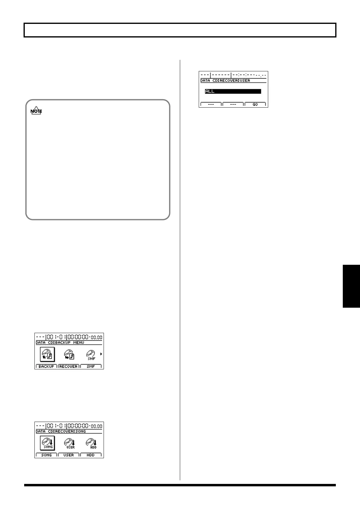 Press CD-R/RW [DATA SAVE/LOAD].