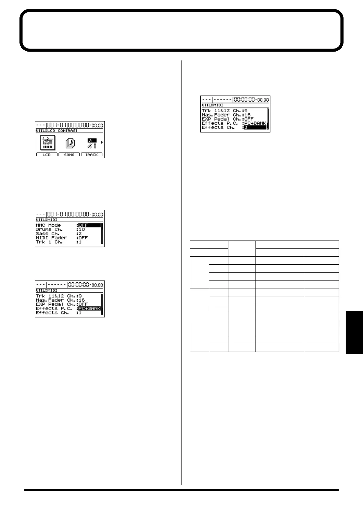 effect patch banks and numbers as shown below.