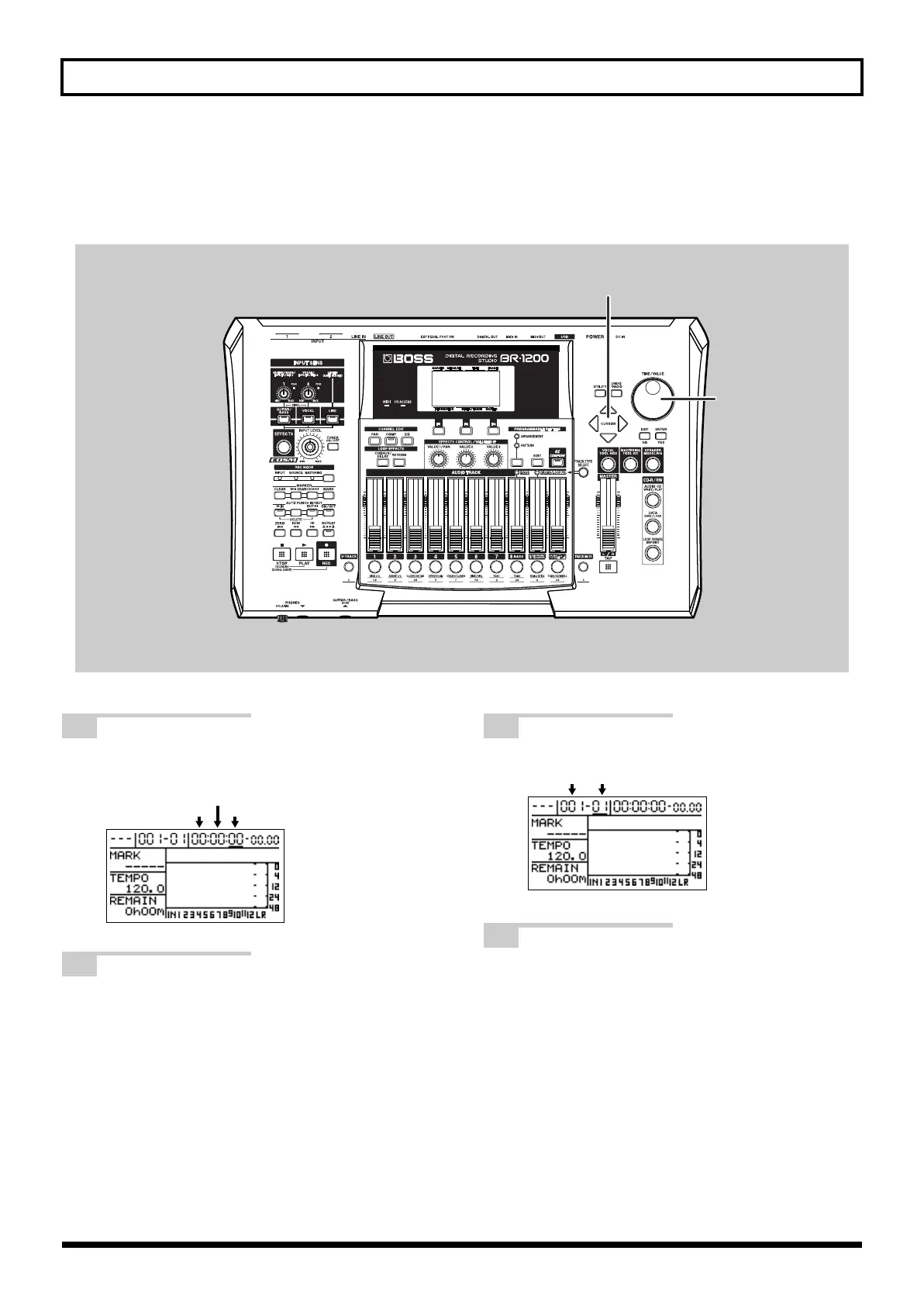 A cursor is displayed below the time for the current position on the top screen. Use the TIME/VALUE dial to change