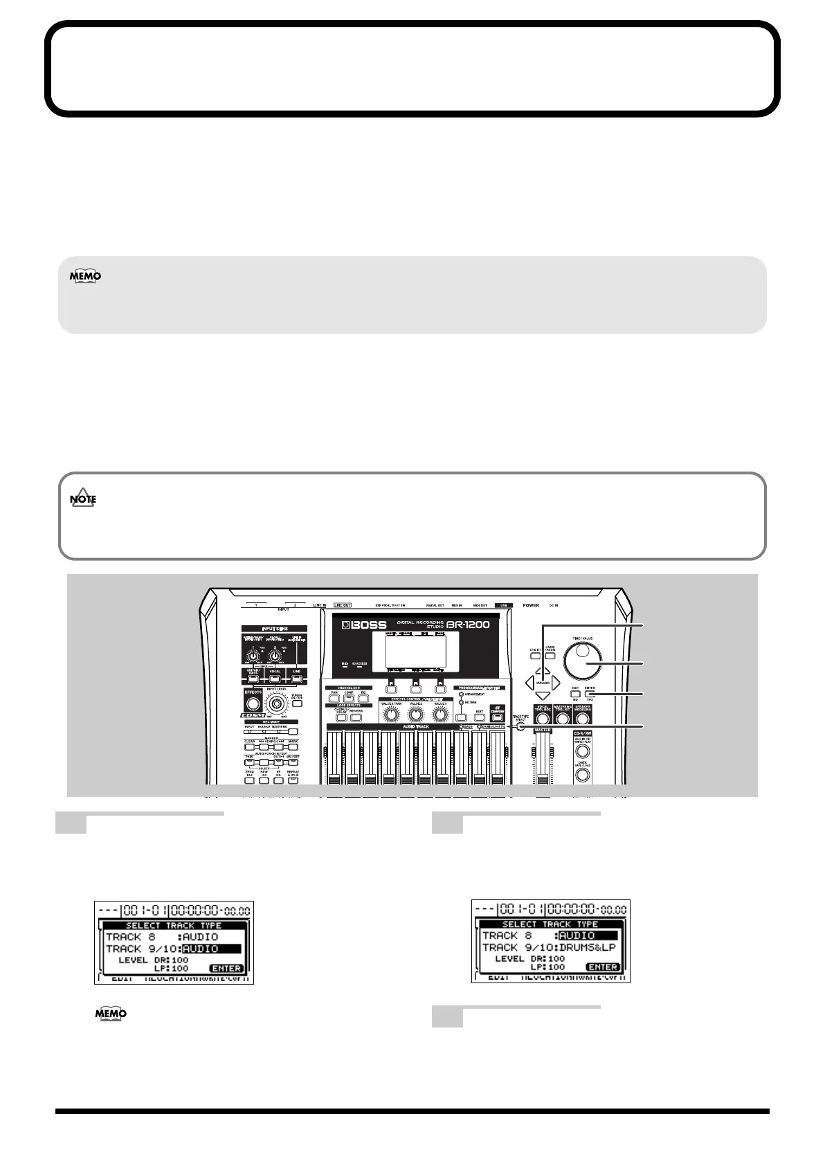 In order to set up the BR-1200CD to play drum sounds, use the following procedure to designate Track 9/10 as the