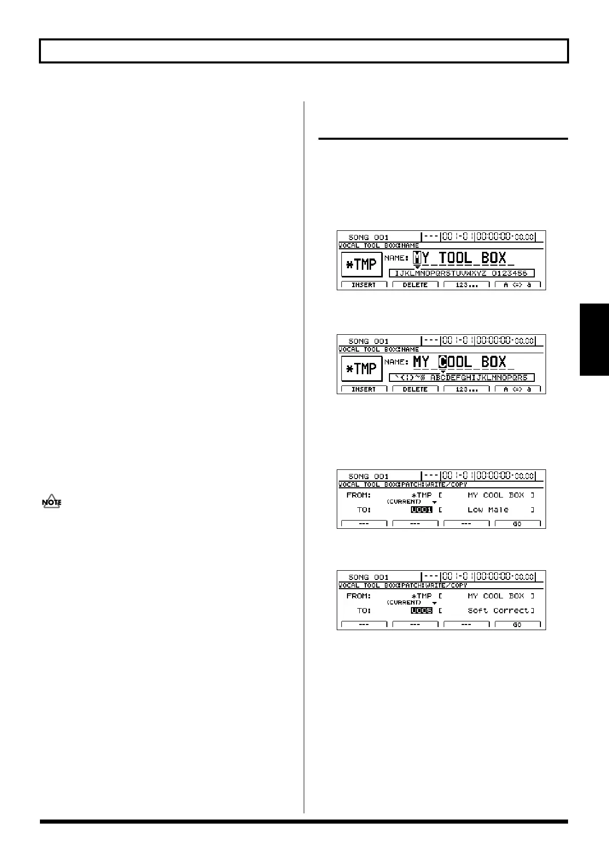 The Vocal Tool Box Write/Copy screen will appear.