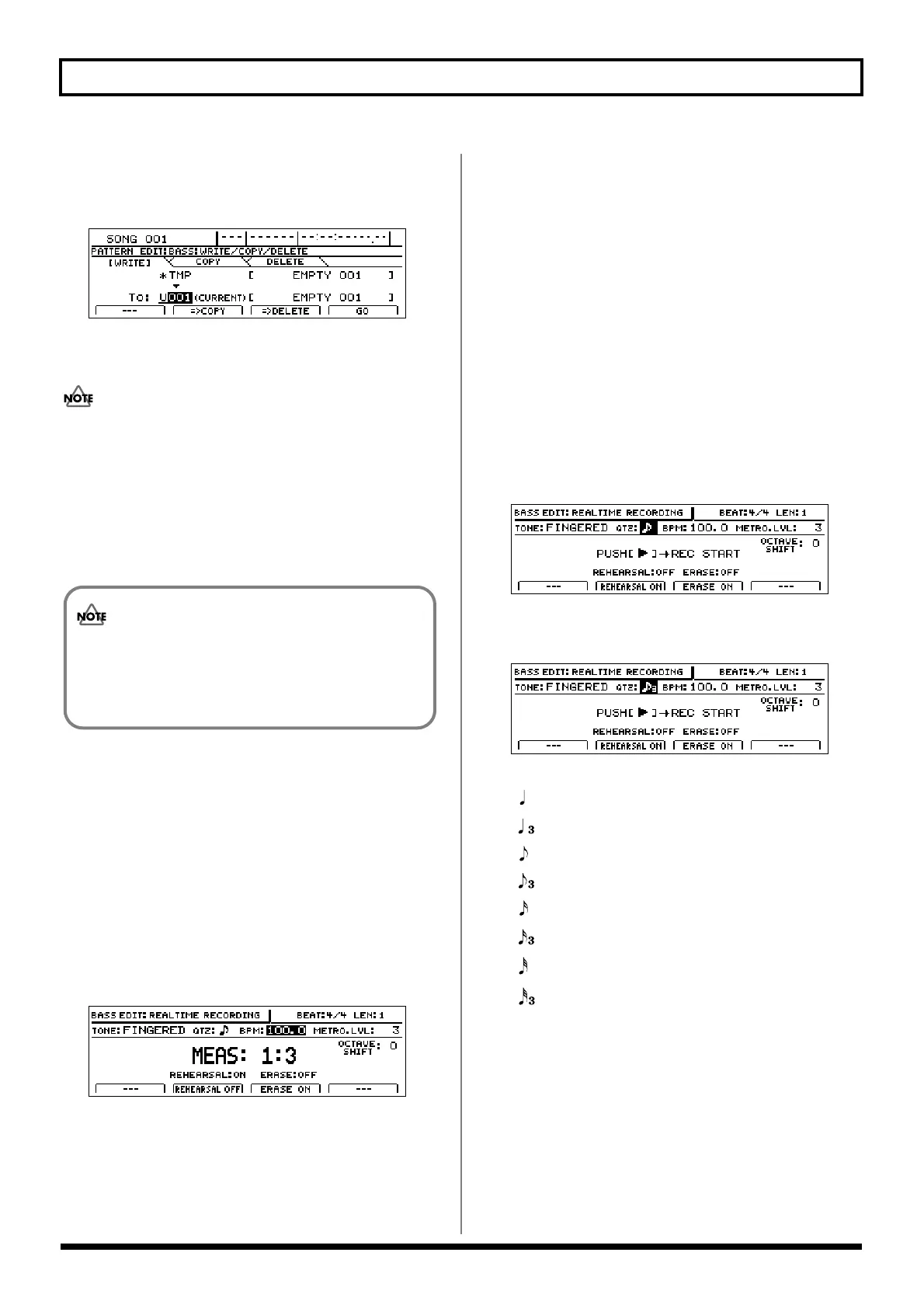 9. Use the TIME/VALUE dial to select the bass pattern to