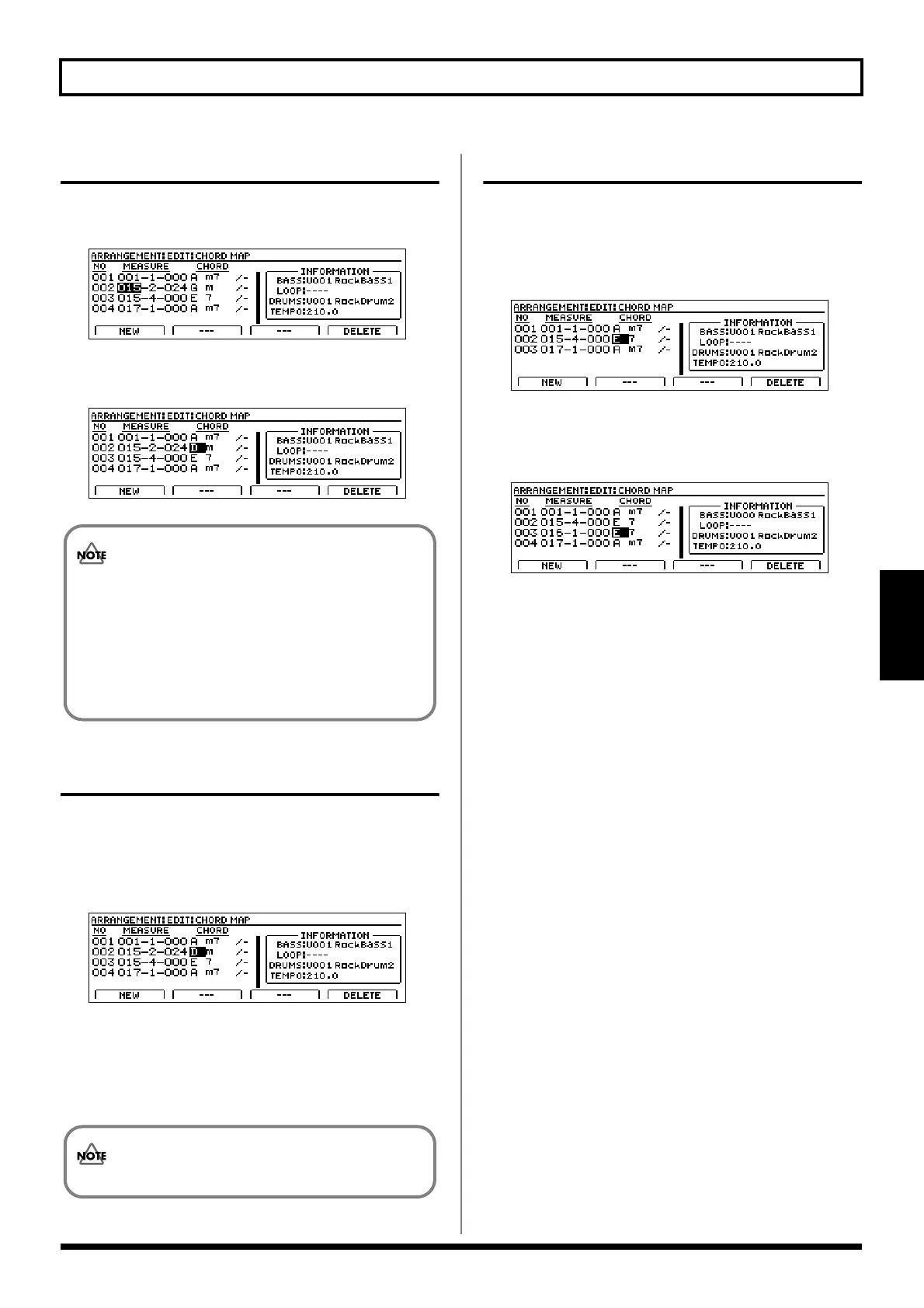 • The location of the first chord is always fixed at 001-