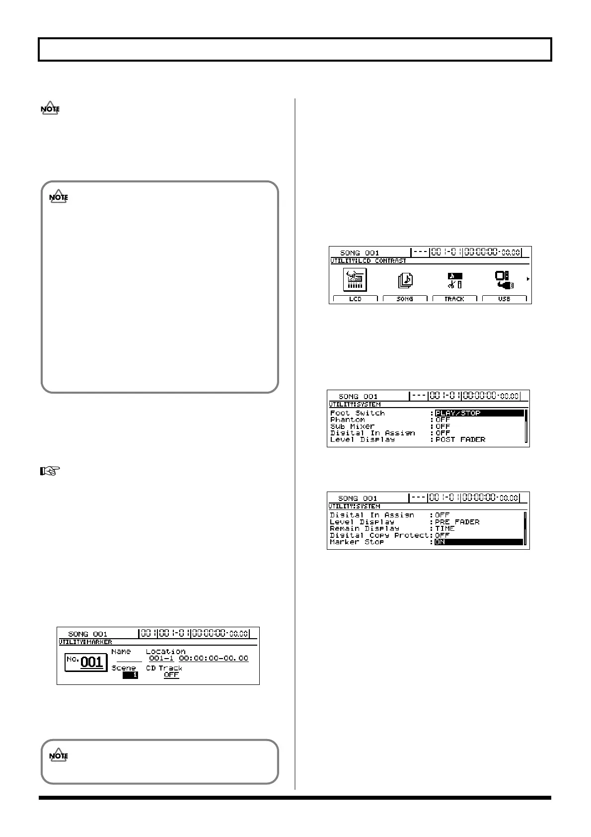 If you set this to “OFF”, the Marker Stop function will be