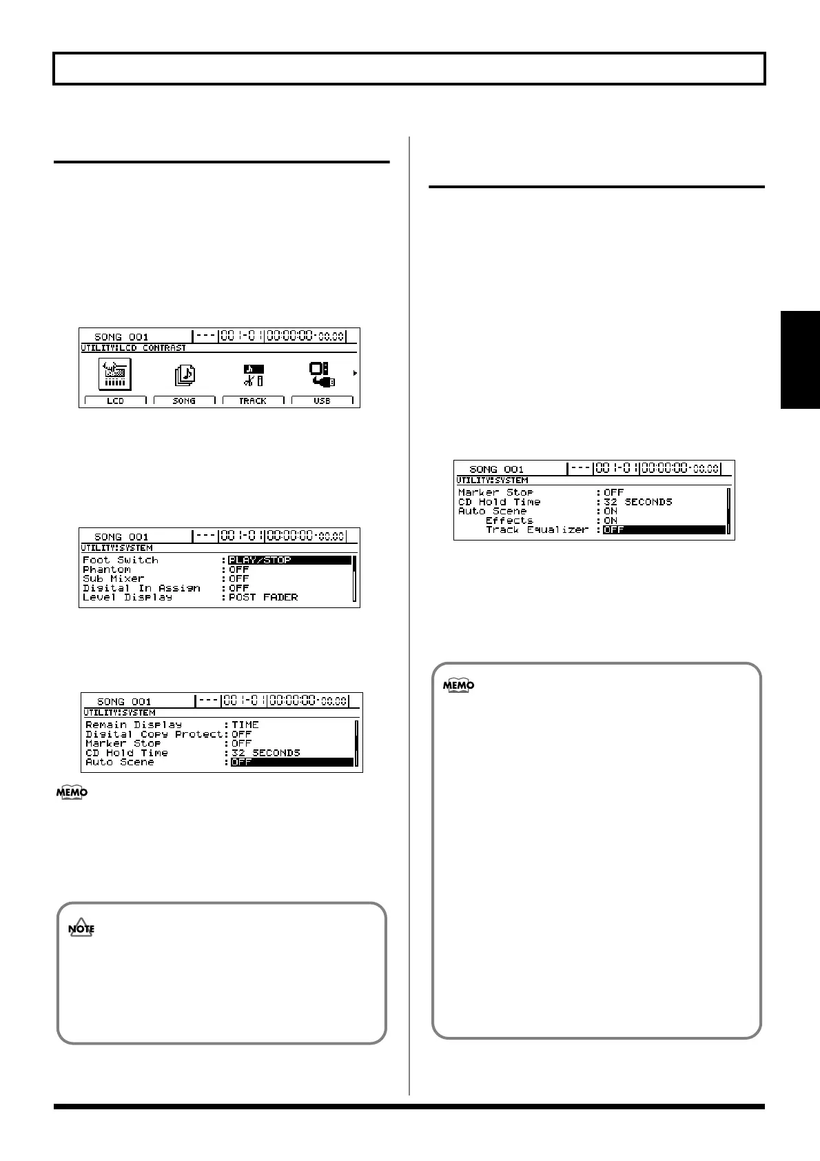 “OFF” when saving a song, or Auto Scene will not
