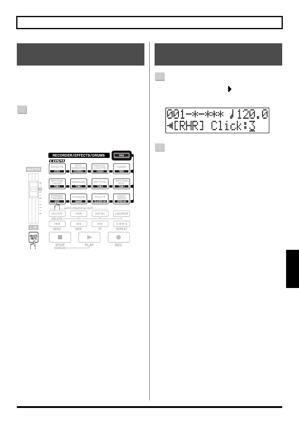 MUTE] and pressing the drum pad for the drum sound you