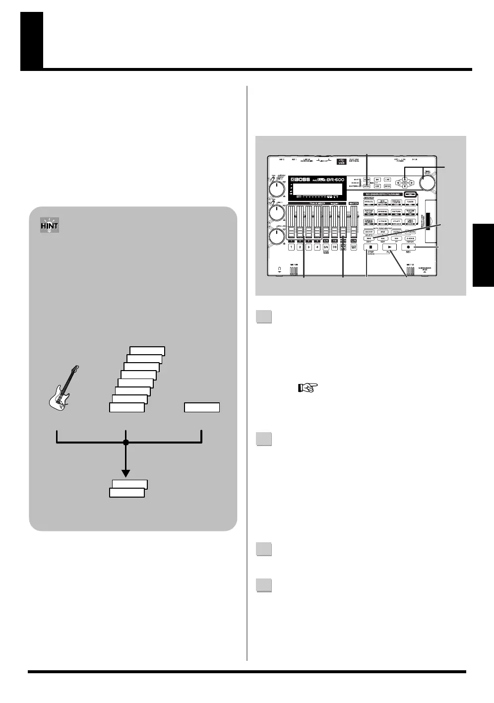 tracks 1 to 4 using the REC TRACK faders.