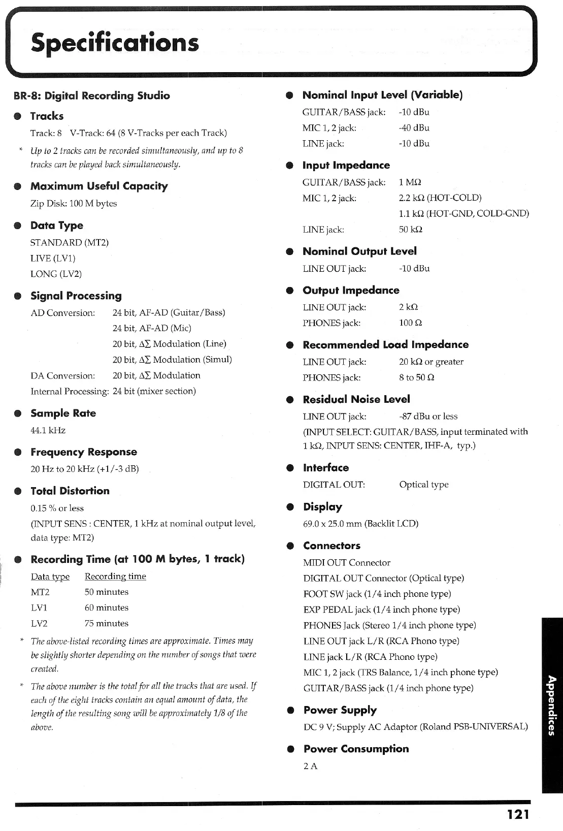 Boss BR-8 - BR-8 Specifications