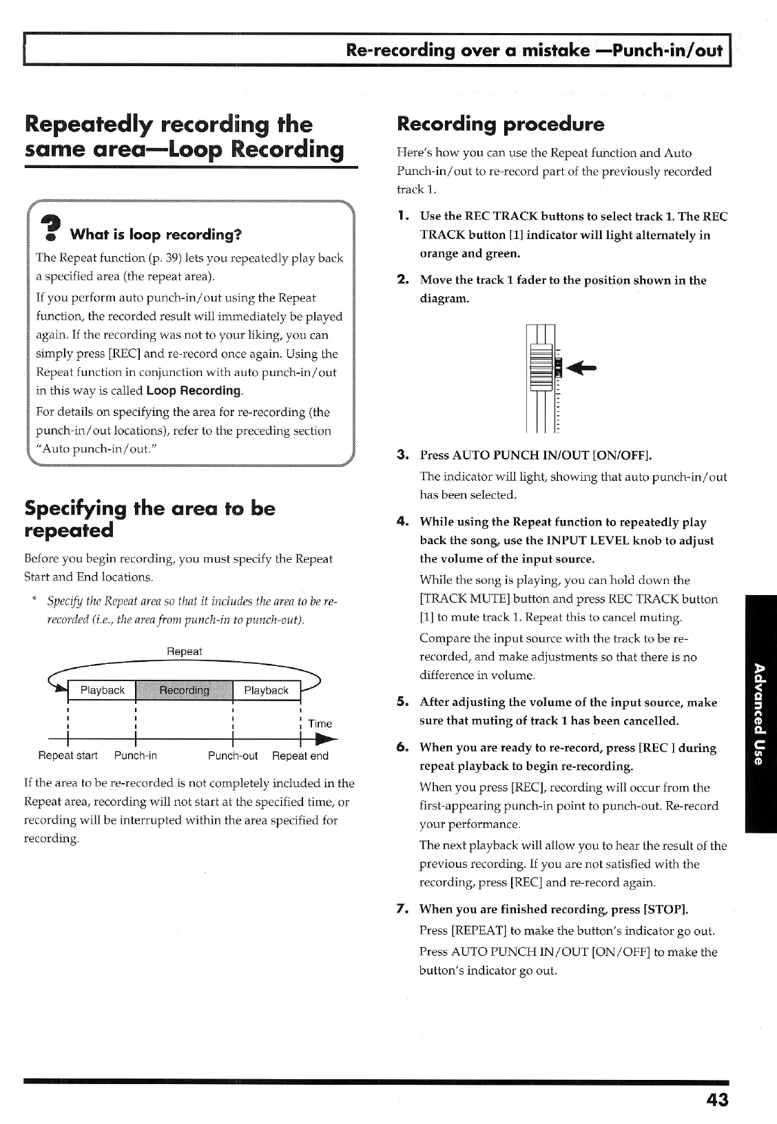 Boss BR-8 - Repeatedly Recording the same Area - Loop Recording; Specifying the Area to be Repeated; Recording Procedure