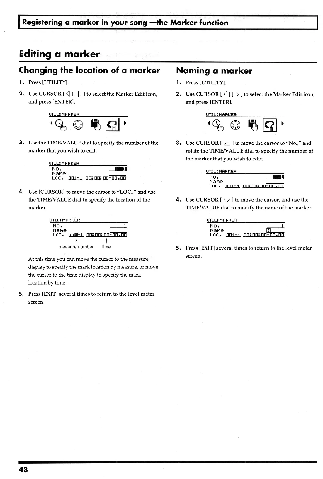 Boss BR-8 - Editing a Marker; Changing the Location of a Marker; Naming a Marker