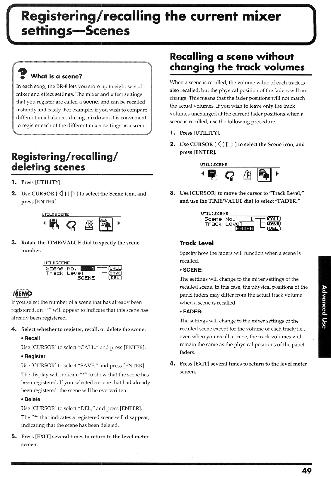 Boss BR-8 - Mixer Scenes and Settings; Scenes Explained and Managed