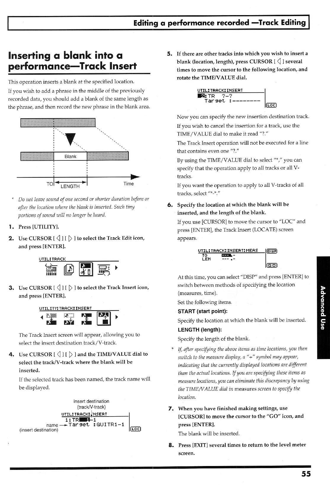 Boss BR-8 - Inserting, Cutting, and Erasing Tracks