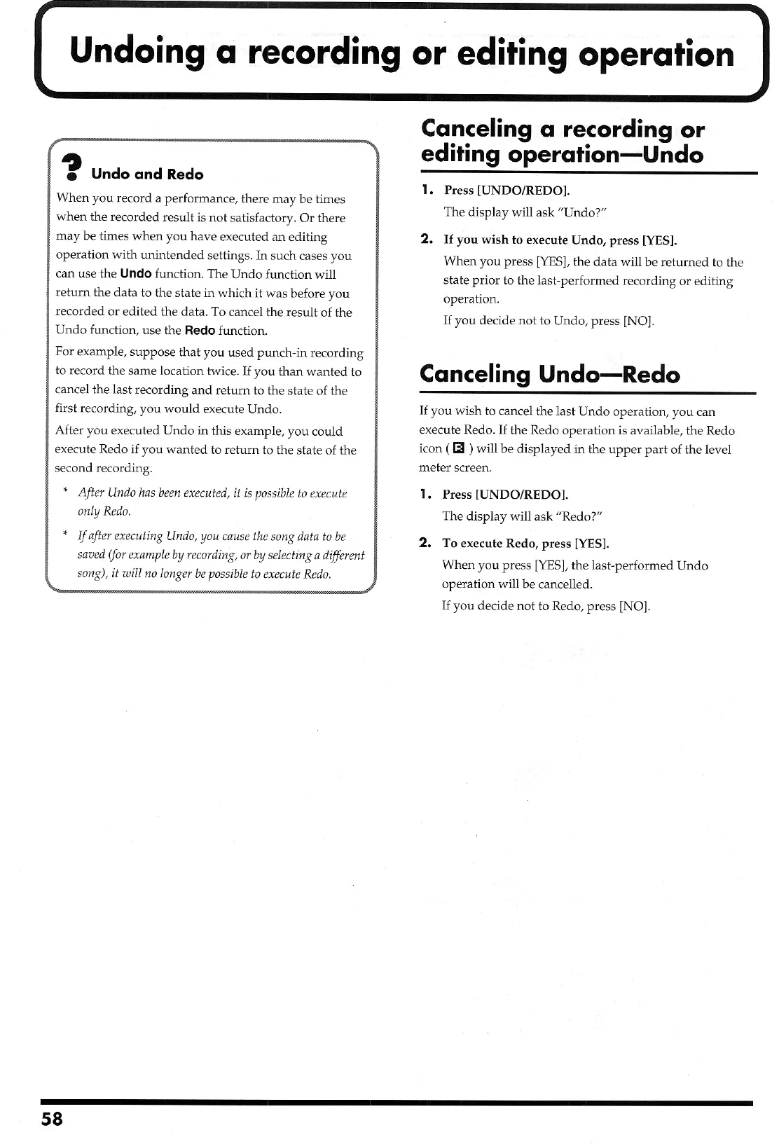 Boss BR-8 - Undo and Redo Operations; Undo;Redo Functionality