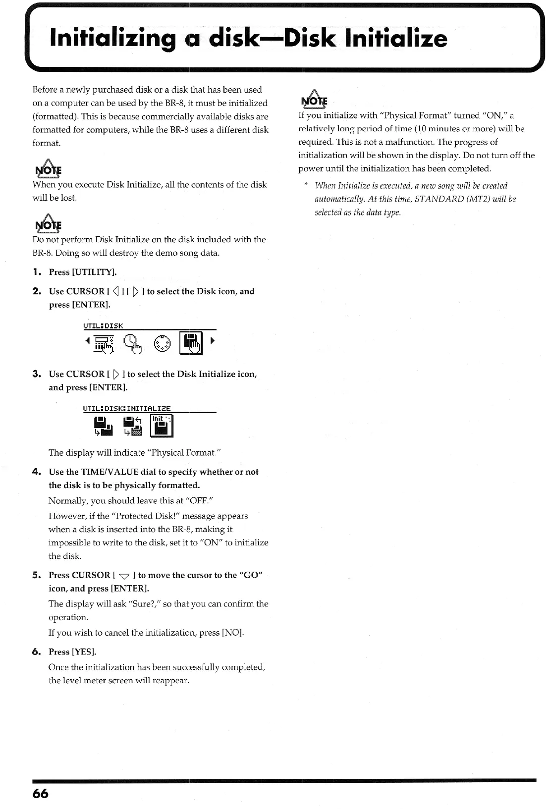 Boss BR-8 - Disk Initialization; Disk Initialize Procedure