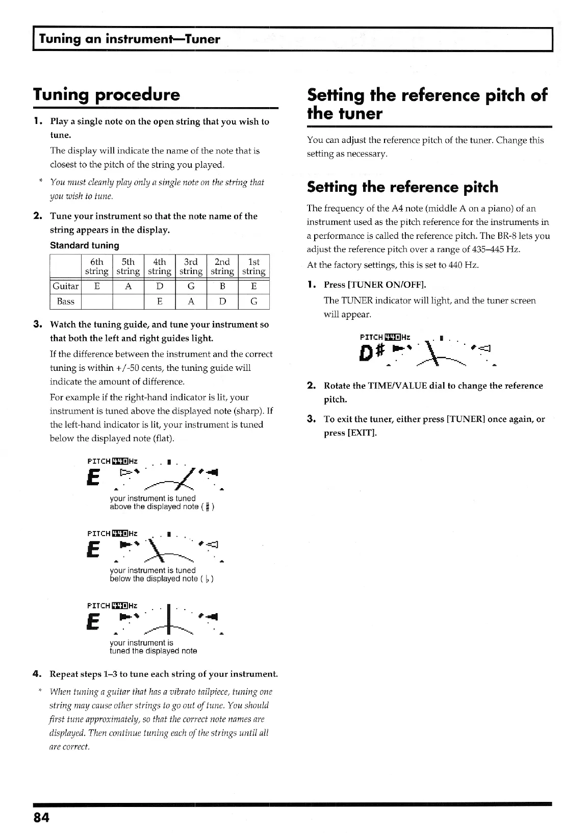Boss BR-8 - Tuning Procedure; Setting the Reference Pitch of the Tuner