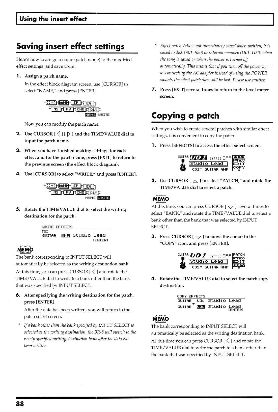 Boss BR-8 - Saving Insert Effect Settings; Copying a Patch
