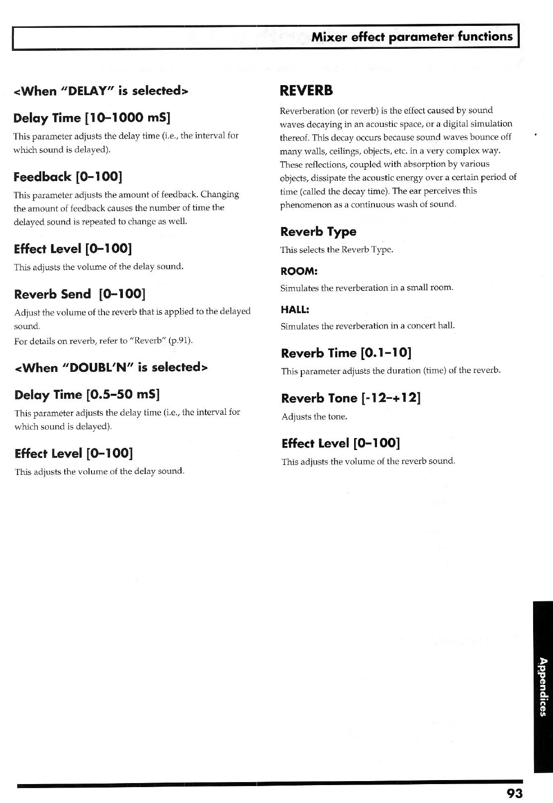 Boss BR-8 - Reverb Effect Parameters