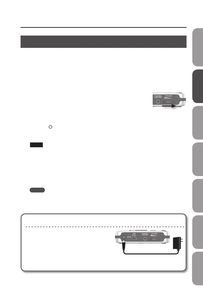 • Before switching the power on/o, always be sure to turn the volume down. Even with the