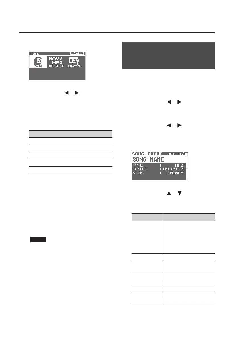 The SONG INFO screen will appear.
