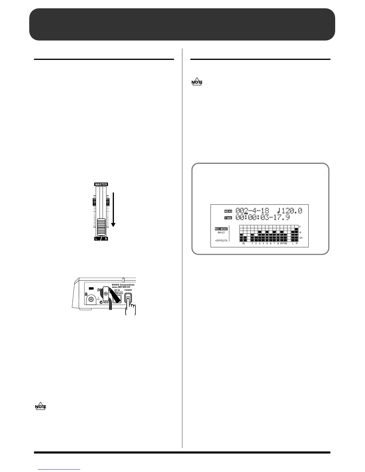 Boss BR-900CD - Turning on; off the BR-900 CD; Turning on the Power; Turning off the Power