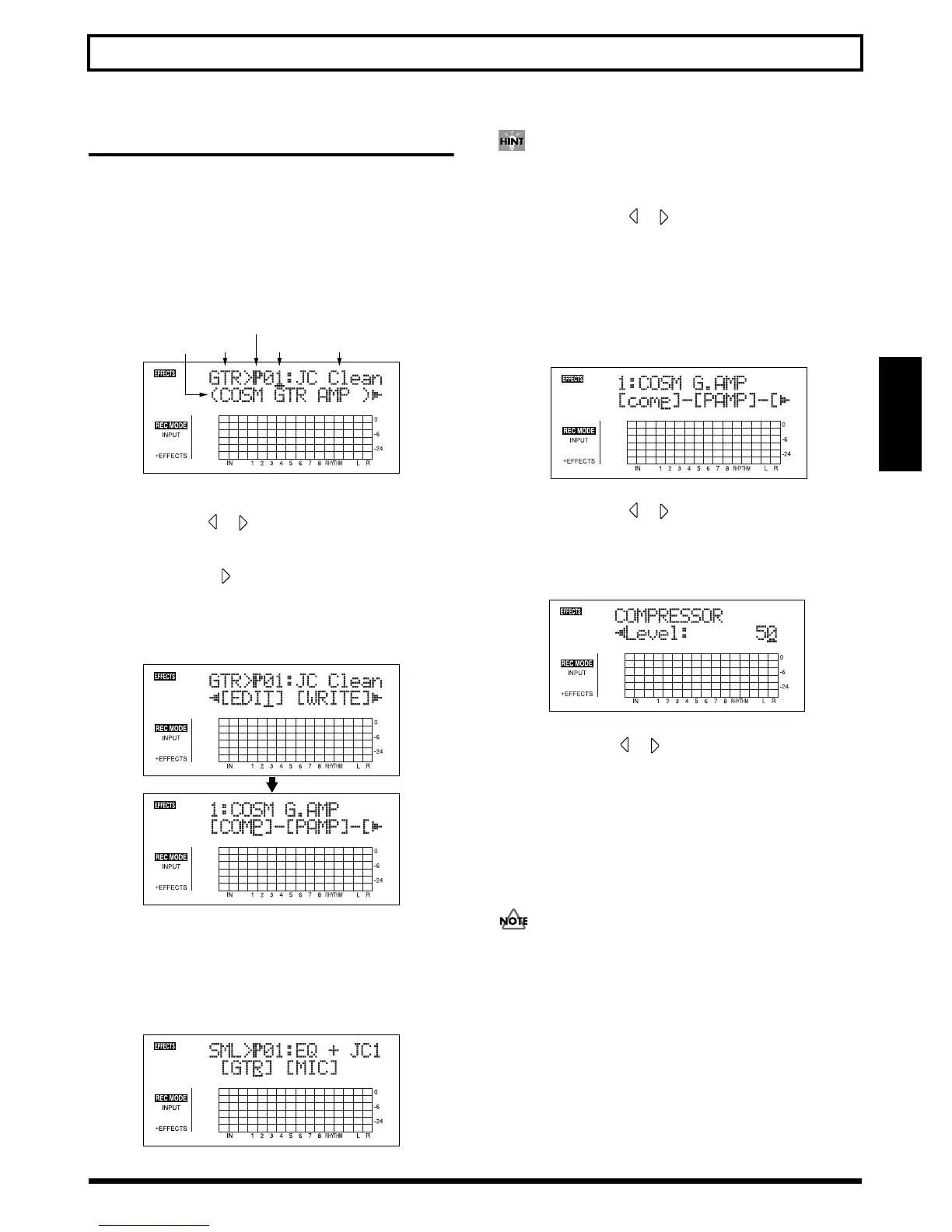 Move the cursor to “GTR” to modify a guitar-use effect,
