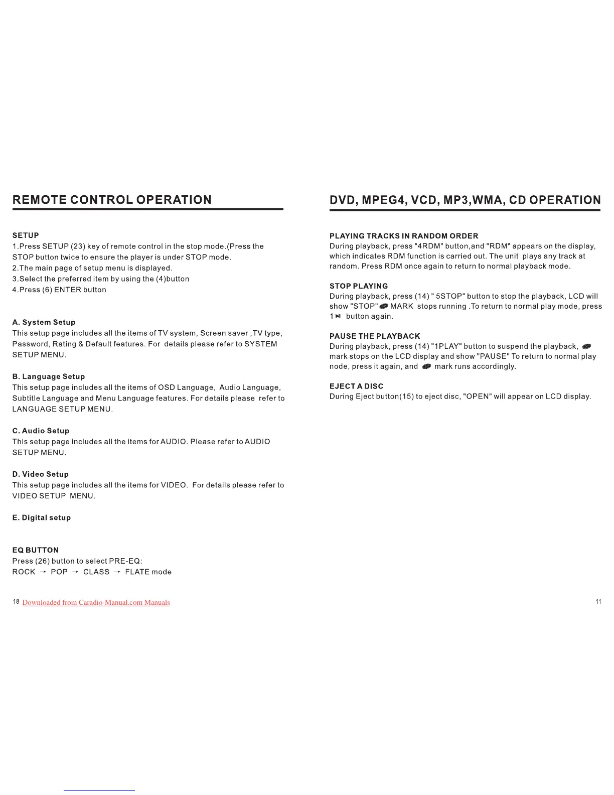 Boss BV6550 - Setup Menu Navigation; Stop and Pause Playback