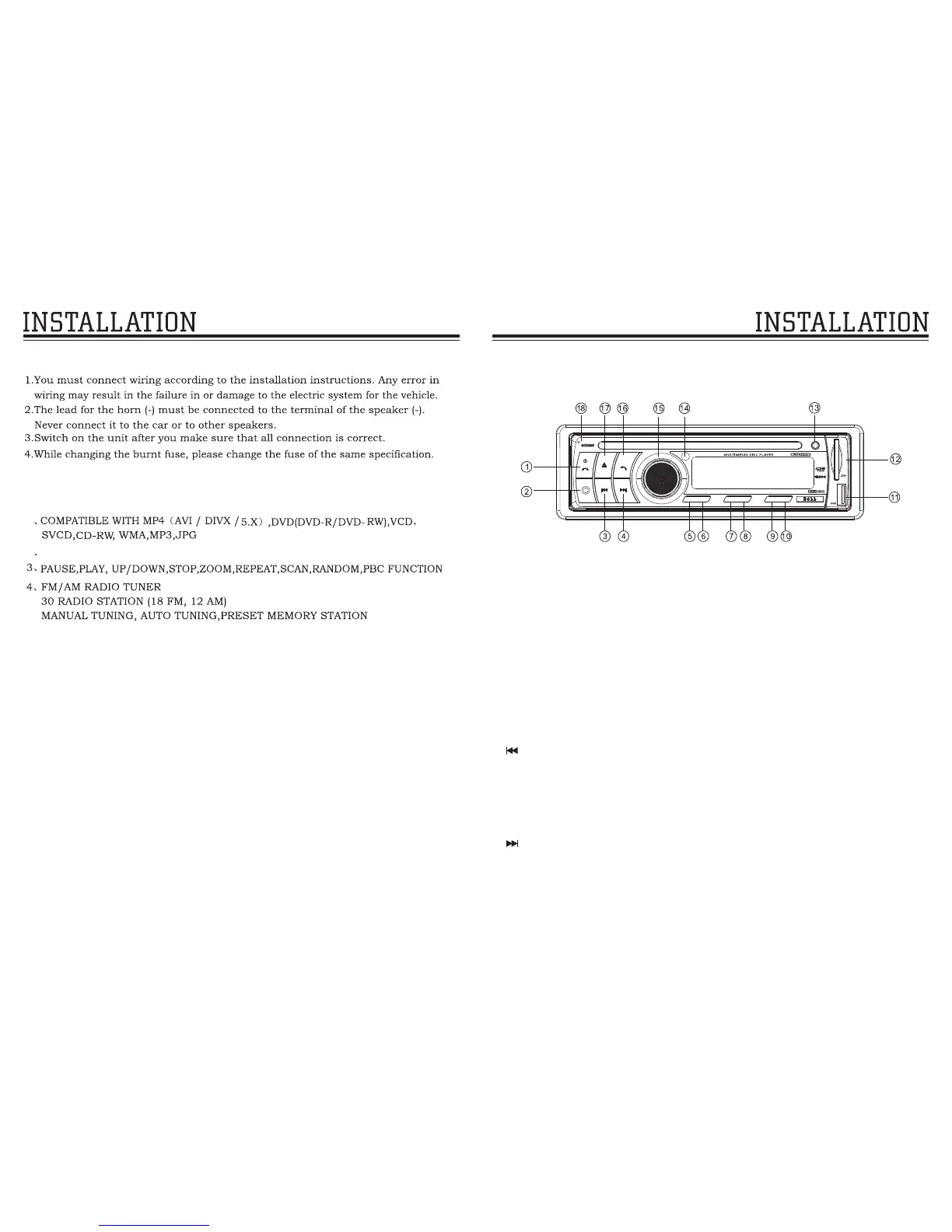 Playing DVD discs: short press to select the next song playing, long press to fast