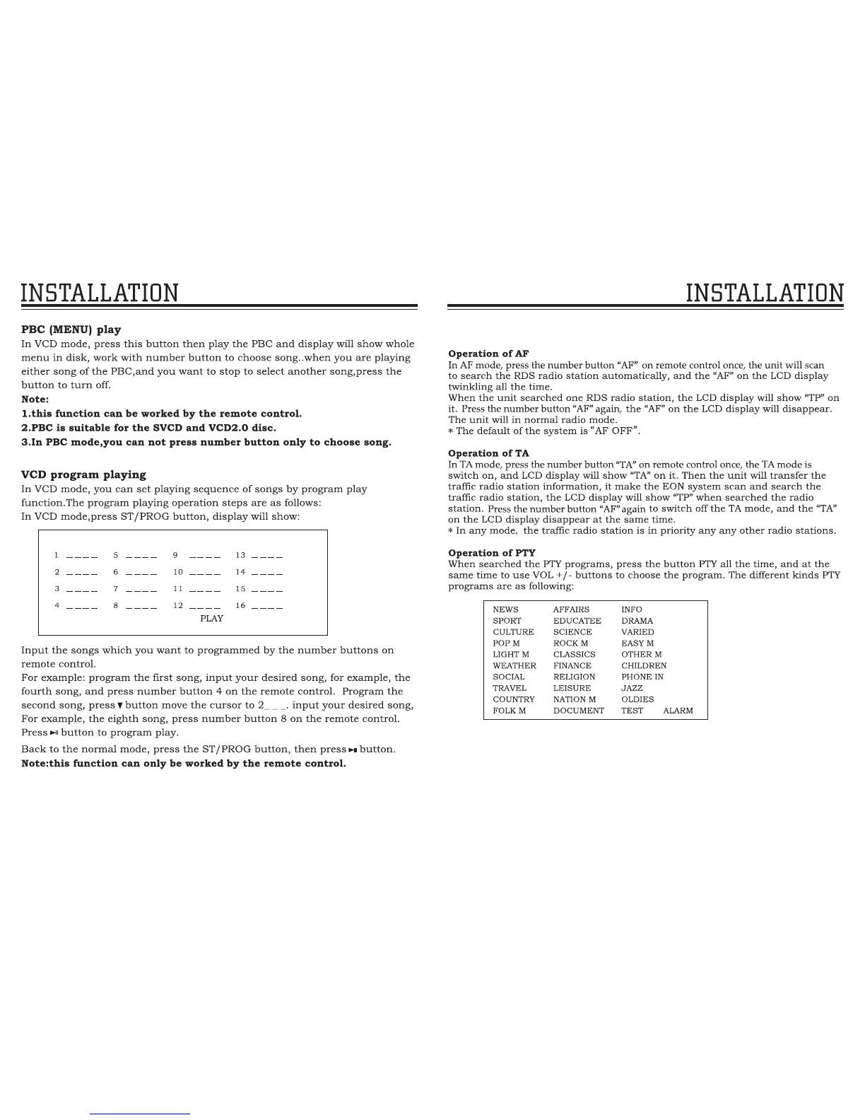 Boss BV6654B - Advanced Features and Connectivity; PBC (Menu) Play and Program Play; RDS Function Operation