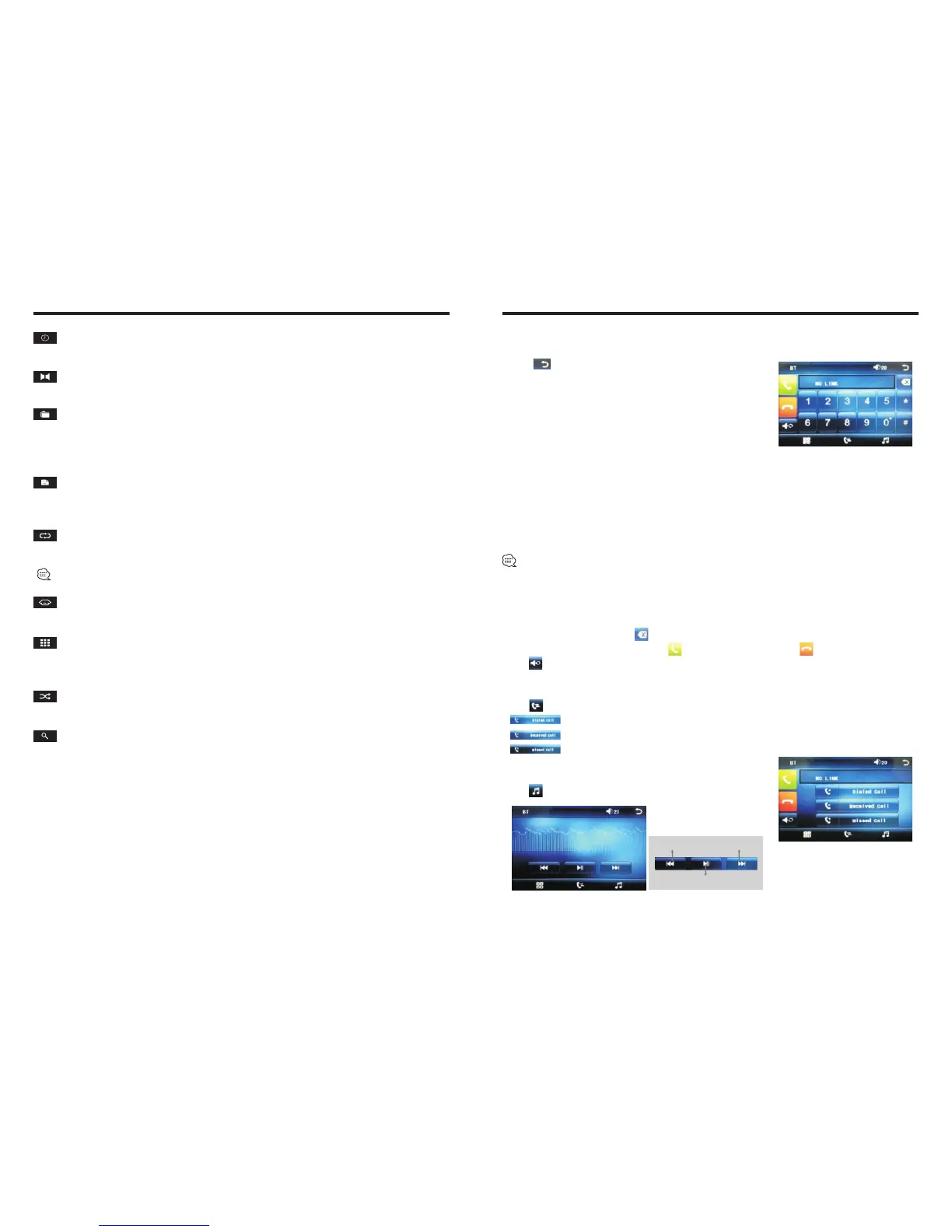 Touch [B-T] icon in the main interface to enter the BT interface.