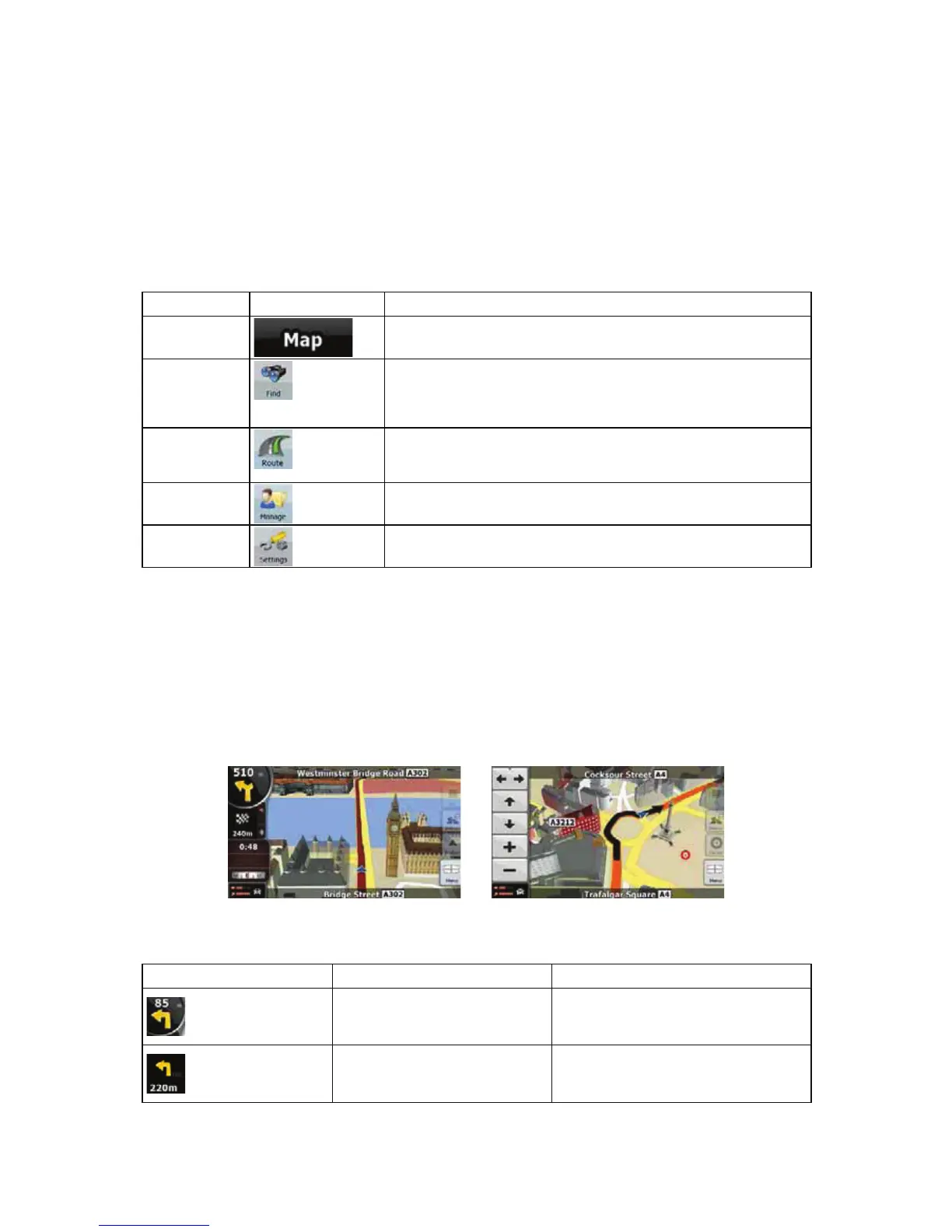 iGO8 starts with the Navigation menu. From there you can access the following screens: