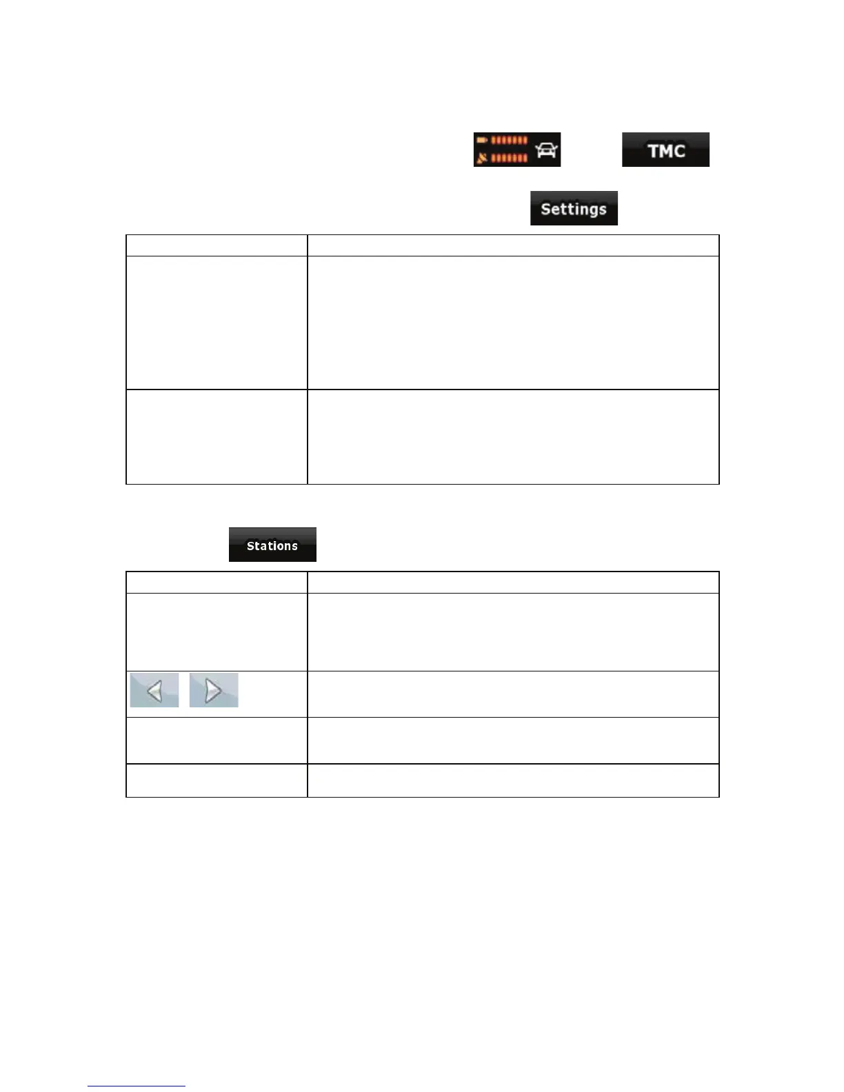 You can access the list of TMC events, change TMC related settings, and select or ignore specific