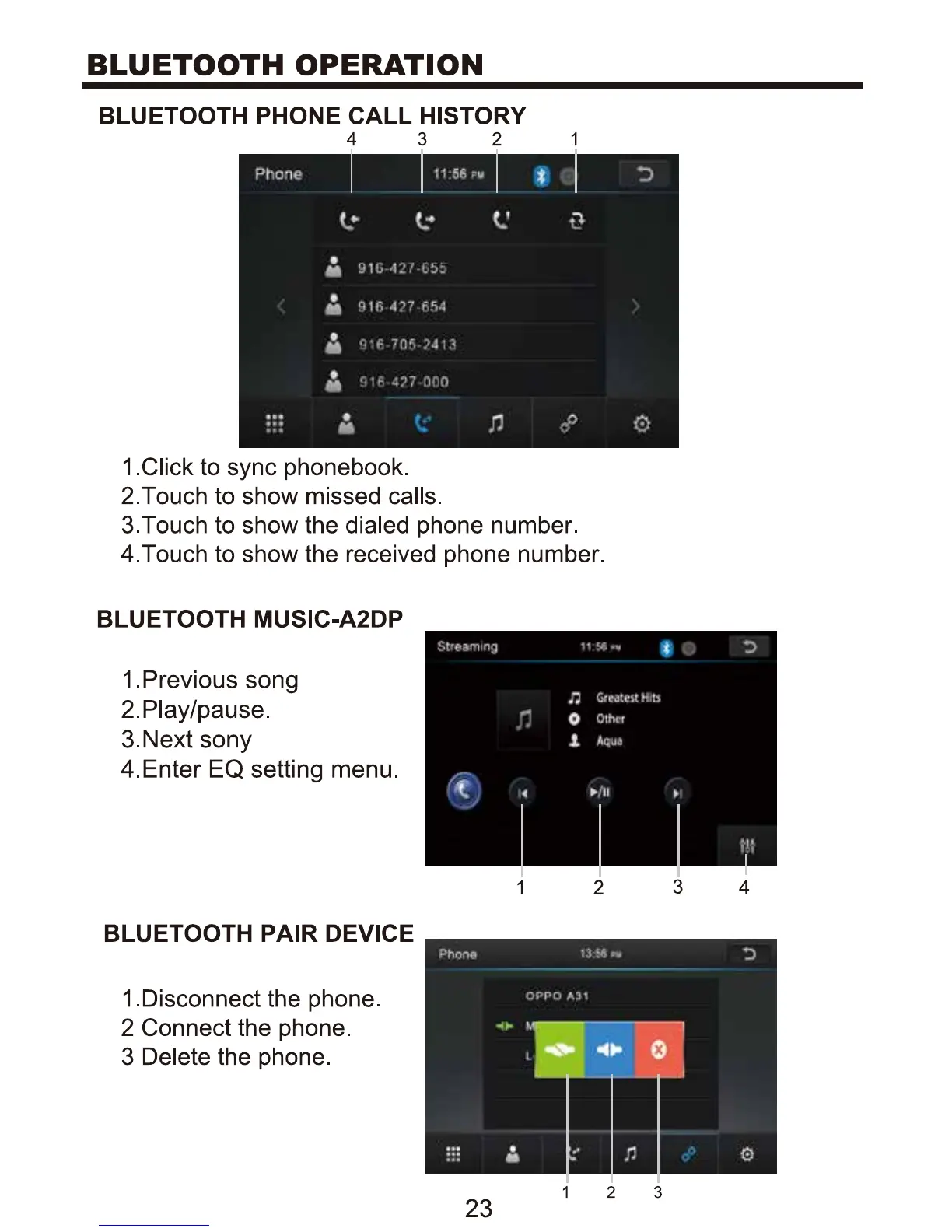 Boss BV9967B - Bluetooth Call History; Bluetooth Music Streaming; Bluetooth Device Pairing