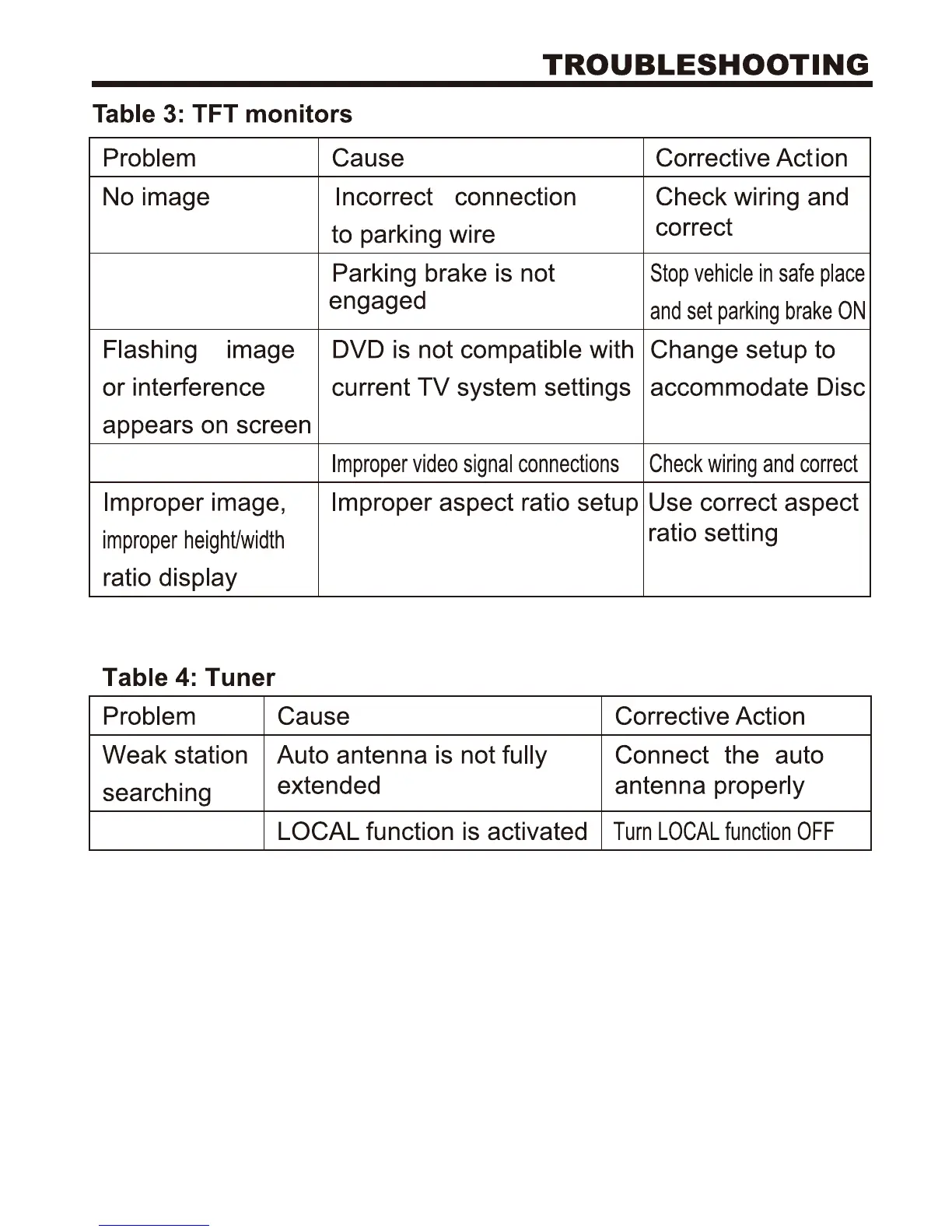 Boss BV9967B - TFT Monitor Troubleshooting; Tuner Reception Issues
