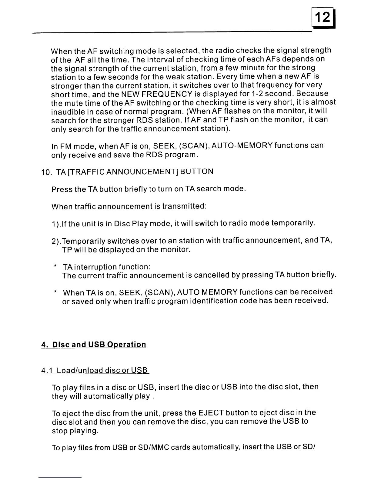 is in Disc Play mode, it will switch to radio mode temporarily.