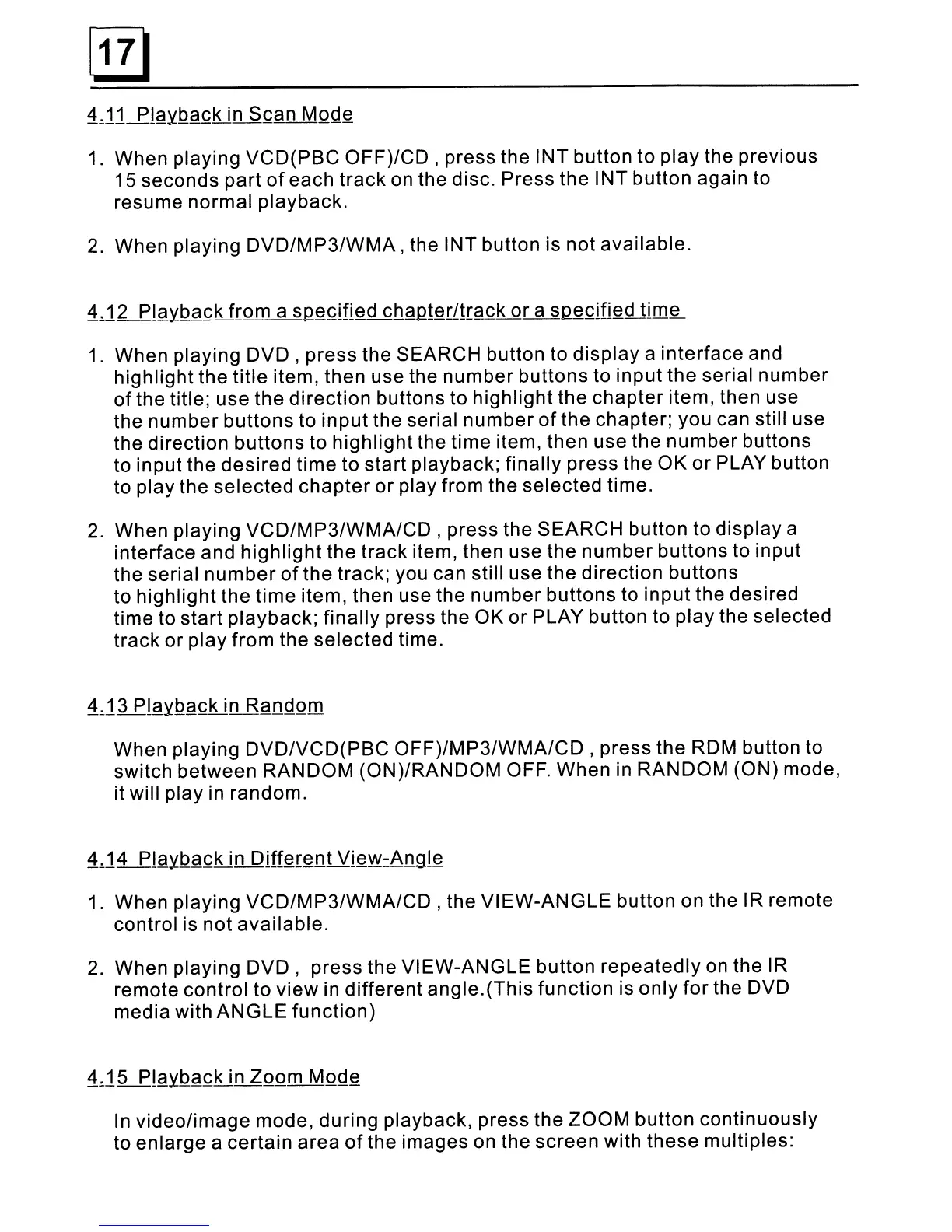 When playing VCD(PBC OFF)/CD , press the INT button to