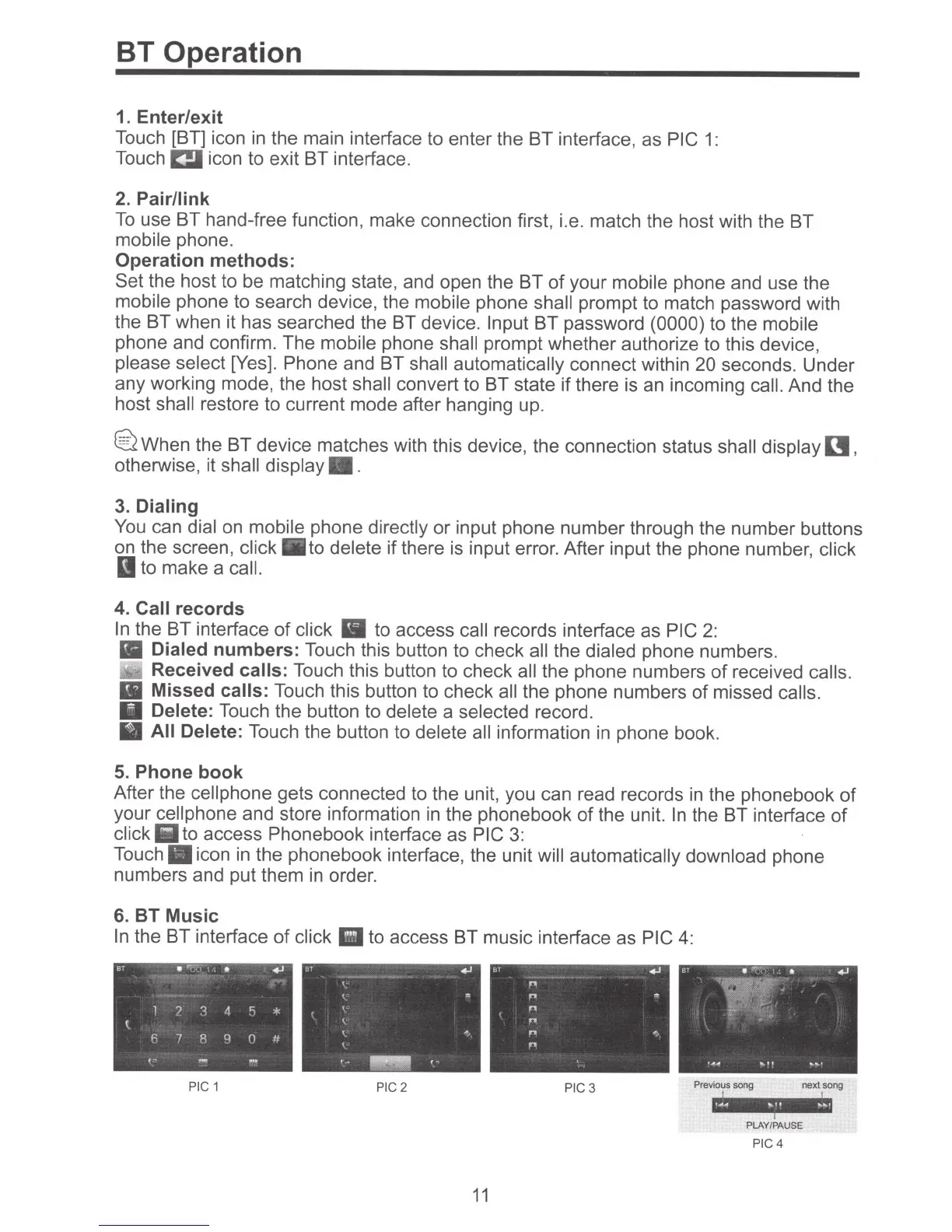 Touch [BT] icon in the main interface to enter the BT interface, as
